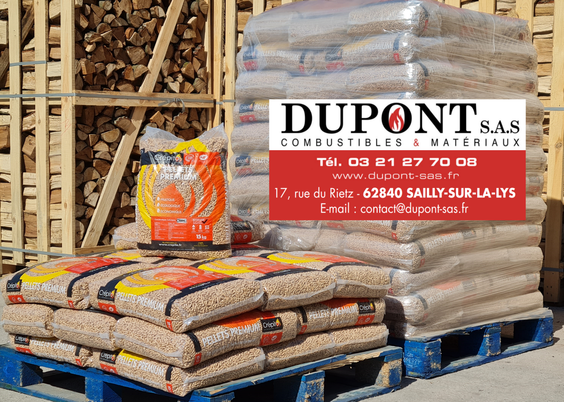 De nombreux clients, (particuliers, industriels agriculteurs,TP et collectivités), font confiance à notre équipe de professionnels et nos produits de qualité. Dupont SAS est présent sur le marché des combustibles pour chauffage, (bois, bûches densifiées, granulés de bois), et distributeur agréé Crépito®.
